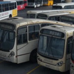 Lixo acumulado e caminhões parados na quadra 24 do Gama, com pragas e problemas de coleta há meses.